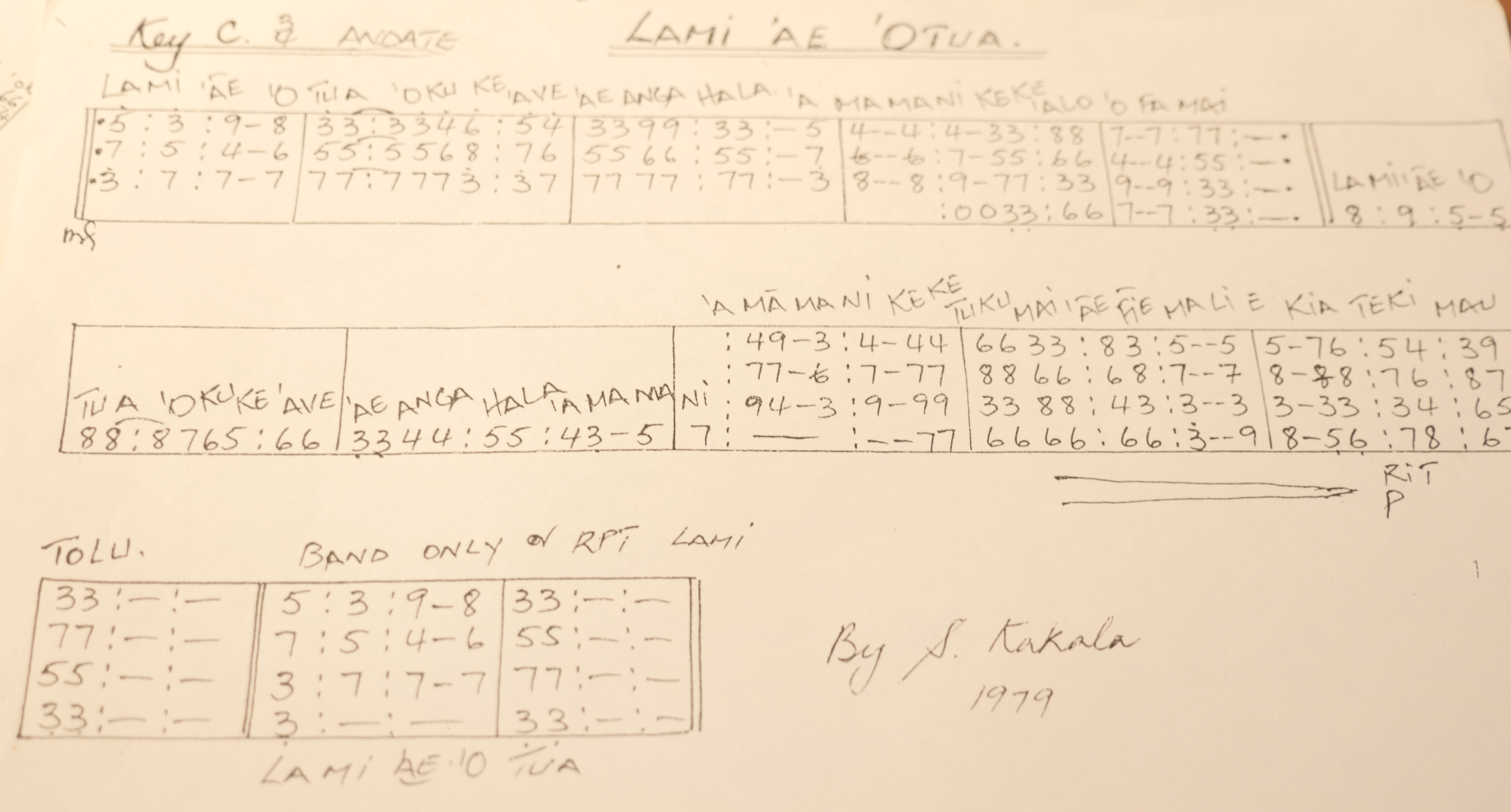 "Taimi Faka-Tonga": He is credited with introducing the concept of "Tongan Time," a unique six-quaver rhythmic pattern used in traditional lakalaka group dances (triplet /Tilipeleti).